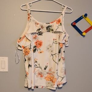 Floral Ruffle Cold Shoulder Blouse