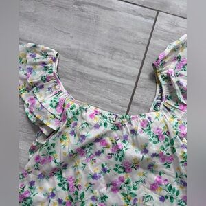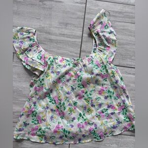 Embrace a fresh look with this charming floral ruffle sleeve top. Perfect for any occasion, this top features a delightful mix of colors that add a touch of elegance to your wardrobe.