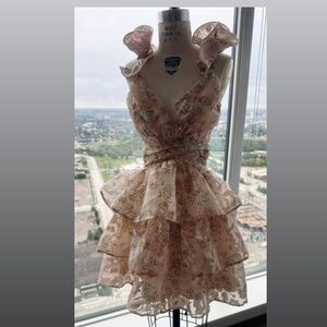 Floral Ruffle Tiered Mini Dress (Pastel Rose Print • Never Worn • Size S/M)