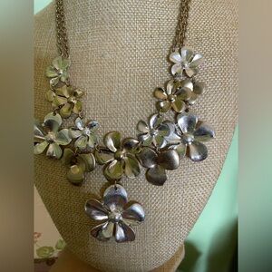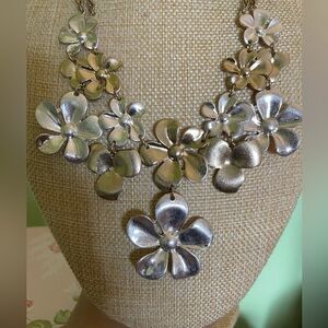 Elegant floral necklace in a stunning silver finish. Perfect for adding a touch of sophistication to any outfit.