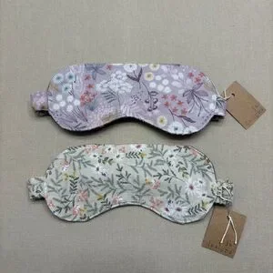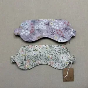 Set of two floral sleep masks. Features purple and cream designs, made of linen and cotton. Handmade, one of a kind, ready to gift