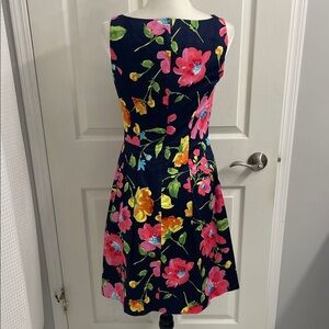 Floral Sleeveless Dress Box Pleats Princess Seams Crew Neckline Size 4