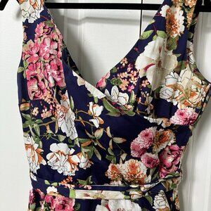 Floral Sleeveless Dress - Navy and Pink