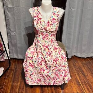 Floral Sleeveless Dress - Pink and White