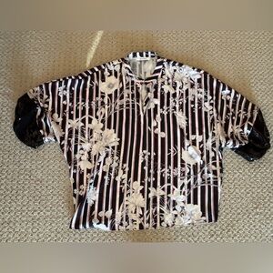 Search tags: Robert Graham, women’s, shirt, top, blouse, stripe, floral, sequin, puff sleeve, short sleeve, designer, relaxed, boxy, loose, lightweight, polyester, small, flower