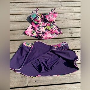 Floral Tankini Top & Skirted Bottom Swimsuit - Size 16