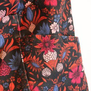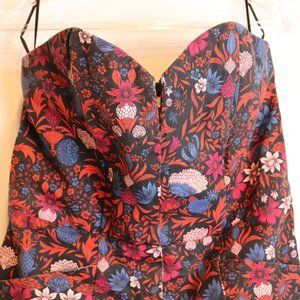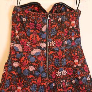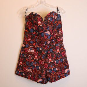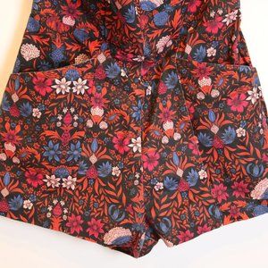 Super cute floral tropical patterned strapless romper. Fitted and supportive with some boning and sticky rubber at the top. Zipper and button in the back, POCKETS in the front! From the H&M Conscious line. In great condition except for some material fading around seams (please see photos for details).