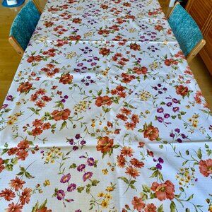 Long rectangular floral waxcloth tablecloth, pvc top with soft polyester backing. Custom cut for my table but I haven't used it for years and it's taking up space! Measures about 100 inches by about 55.5 inches. Cat friendly, nonsmoking home.