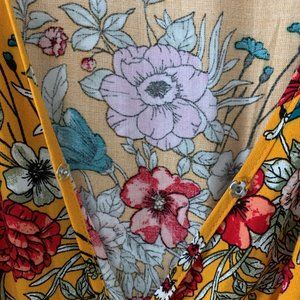 This dress is one of my favourites but I have never had a place to wear it. It is a maxi length but could be midi depending on your height with a wrap top style. There is an extra button just in case the V-neck is too low