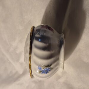 3.Vintage Germany Porcelain Floral Trinket Box Lidded Blue Crown Vanity