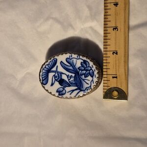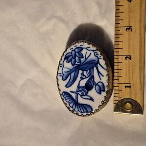 2.Vintage Chinese Porcelain Shard Box Blue White Bird Trinket Pill Box