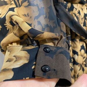 Floral black/ golden yellow chiffon maxi dress long sleeve