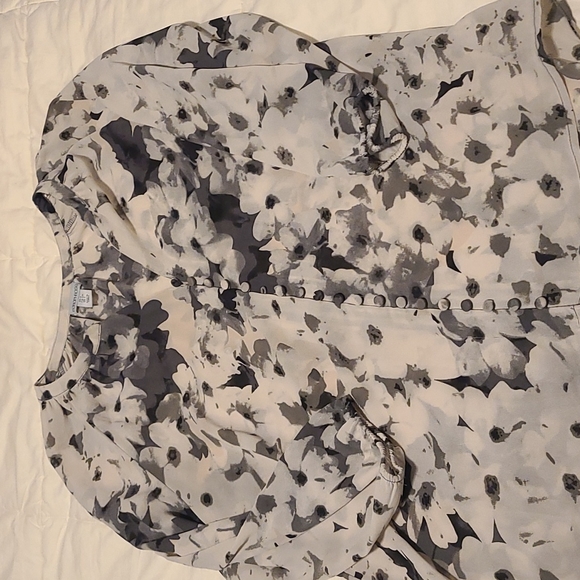 Black and white floral blouse with button detailing down front. Size small. Loose fitting and slightly sheer. Missing one button but not noticeable. Excellent condition