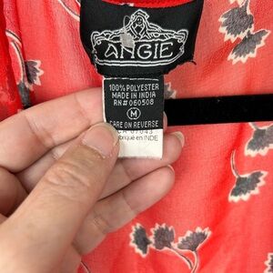 Angie kimono beach pool coverup, Size Medium, with fringe detail at sleeves and bottom hem. Lightweight polyester fabric, one pull near bottom left, not really visible when wearing the coverup.