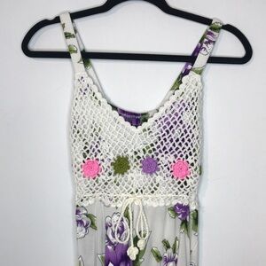 In good second hand but there’s some fraying and tear on the bottom hem. The rest is in good condition. Smocked details on the back and the straps. Measure lay flat: bust 15’’ waist 13’’ length 40’’ hips 21,5’’.