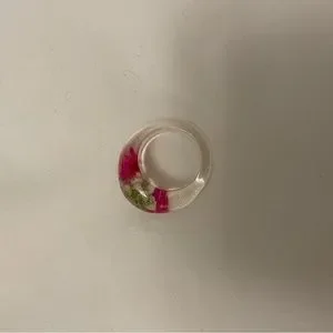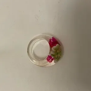 Floral ring. Clear plastic with printed flower. Approx size 6