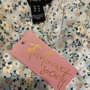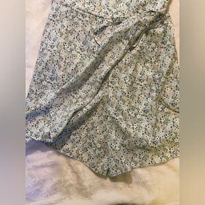 This is a very nice cool summer romper with a nice floral pattern looks at the front like a wrap dress but is actually shorts .