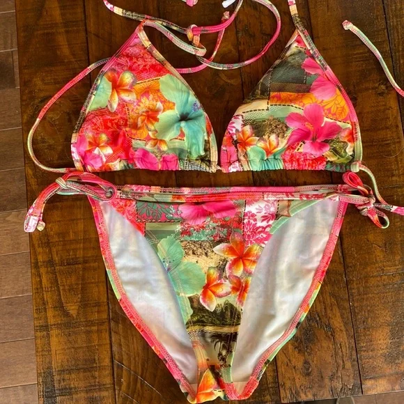Super cute floral print. I cut the tags off but I always wear small bottoms and large top. Priced to reflect having no tags…🙂