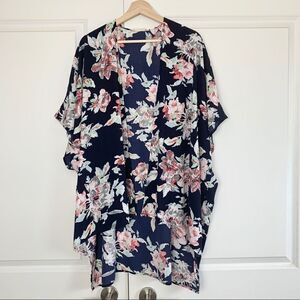 The pattern on this cover-up cardigan is beautiful! This cardigan is navy with a floral pattern perfect for summer!