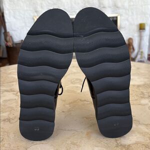 - Shoe Upper: Three tone (burgundy, grey & black) patent leather