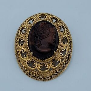 Florenza Tortoise Shell Cameo Gold Tone Brooch #848