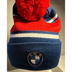 Florida Panthers & BMW Knit Beanie Hat Red & Blue Stripes W/ Pom Pom Winter Cap