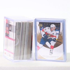 This is a product that I am really excited to put out. This is a great collection of different cards from different years that any fan young or old would love to have of Their favourite team. I want this to be something that someone can look at and say, "Yes! I got good cards of my team here". How it is set up is that I have a minimum of 50 cards in the plastic container box. I put a few extras in just to make sure if there is a double in there that I missed, it is covered as well as just to give a little more. I prefer to give more than just meet expectations. Then there is 5 cards in a mystery pack in protective plastics.