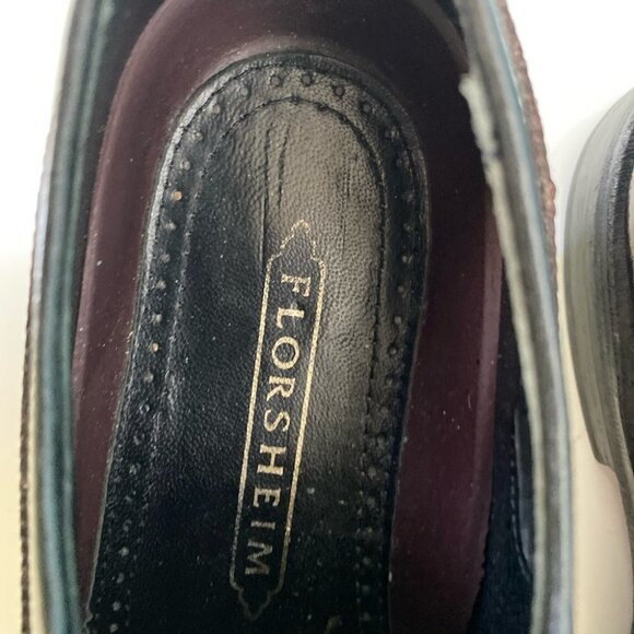 Florsheim Burgundy Leather Long Wing Tip Brogue Derby Dress Shoes Mens 7.5 3E