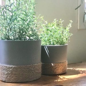 Recycled grey plastic pot with jute rope for a nautical feel.