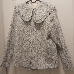 Flower Print Ruffle-Collar Shirt Jacket