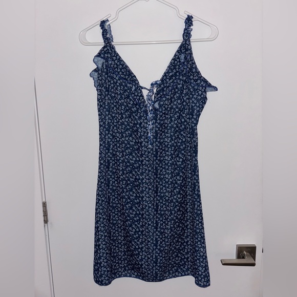 This sleeveless sundress from Shop Jeen features a charming blue and white color scheme, perfect for casual or resort wear. The spaghetti straps and v-neckline add a touch of elegance, while the mini length and light fabric ensure comfort and style for warm days. Brand new never worn. Runs small