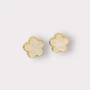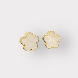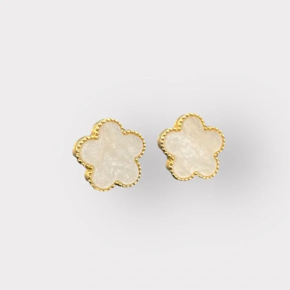 Flower earrings, gold tone contour and pearly white detail. In good condition.