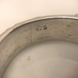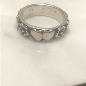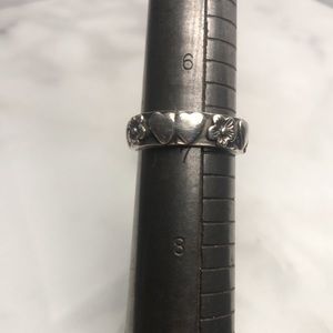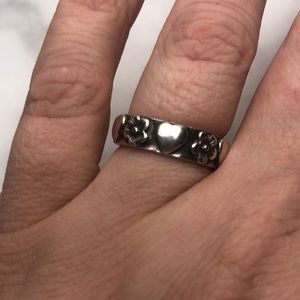 Thick sterling silver (marked 925) daisy & heart band. Cute & likely vintage. Hefty (well made!) 5.7g