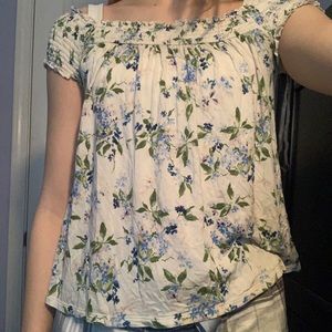 super cute floral printed top. can be worn off the shoulder or as a normal shirt. super comfy, message before buying