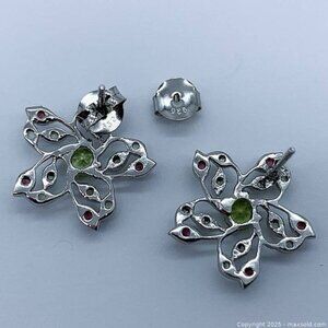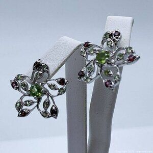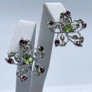 Flower shaped Peridot Rhodolite Garnet Gemstone 925 Silver Earrings
