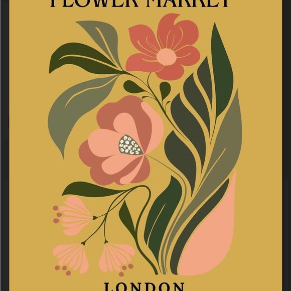 Flower Market London, Aesthetic Abstract Floral Boho Digital Wall Art Print