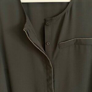 Tunic with silver touch. Covered button placket in front. A little longer at the back. Silky.