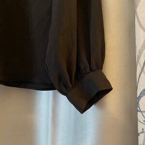 Button Up Blouse, really flattering look with breast pockets with buttons, cuffs at the wrist, oversized arms to flow, (regular length) and slightly ruched shoulders.