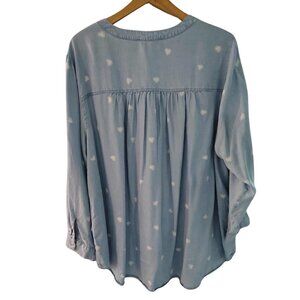 Flowy Casual Chambray Blue Tunic Top Blouse White Hearts | Jane & Delancey | 1X