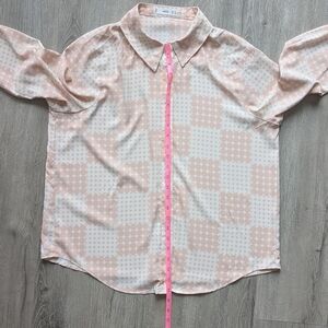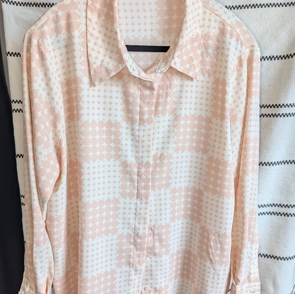 Shirt-style collar. Long buttoned sleeve. Hidden button fastening on the front section.