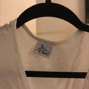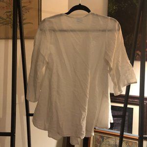 This is a lovely lightweight lineny and flowy white tunic/top with wide sleeves. Perfect for the spring and summer months! There are also sweet wooden button details - note that the shirt does not unbotton, these buttons are only for design purpose!