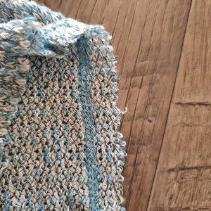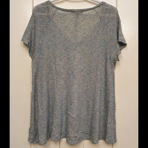 Good used condition. Raw hems on sleeves. Hi-low hem. Stretchy and flowy.