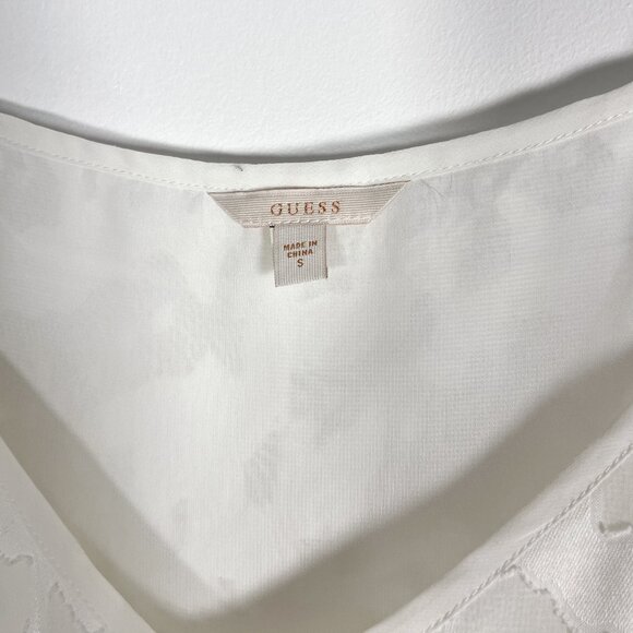Flowy white Guess tank top with adjustable straps and inside liner.