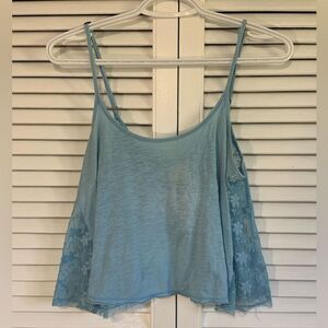 ⭐️ Flowy blue lace open back cropped tank top women’s extra small