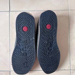 Picture # 2 shoes a loose thread. Picture #3 shows wear on both heals. The soles have some wear so be sure to look the picture over to determine if the amount of wear is suitable to you.