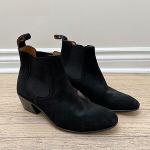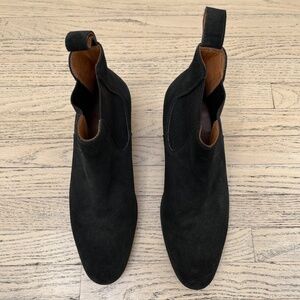One of a kind black suede John Fluevog Cairo boots in W9. As classic as it gets. Super comfortable low heel Chelsea boot.