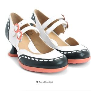 Fluevog Enneagram Giver black and white double strapped mary jane EUC