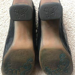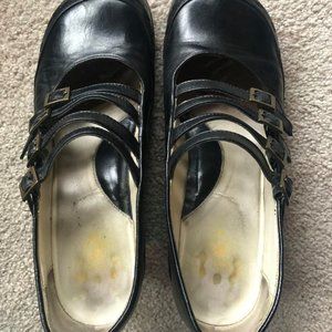 Operetta Illeana size 8. Good used condition with recent repairs. I replaced the top 2 elastics on the right foot, top 1 on the left. Had the leather wrap on the heels glued back down. There is insole wear and discolouration but still intact and not moving! I have new heel lifts for it - you can choose between black or the neutral they originally came with. Please specify in the comments when purchasing. Will glue in before shipping.