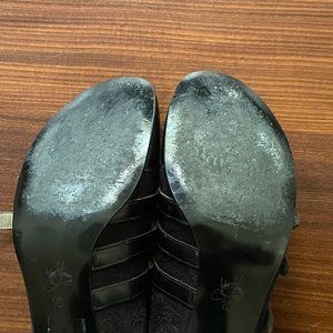 Launched in 2013 as part of the fall/winter collection. Stretched out slightly from wear, these would best fit someone with medium-wide feet — see photos for inside measurements. Well-balanced 3” heel with a wide toe bed for balance, comfort and walkability. Gently used condition with minor wear on buckles -- see photos for details.