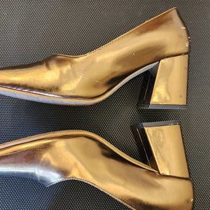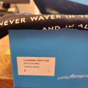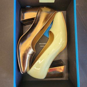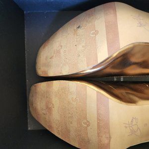Small scuffs on bronze patent. The blue colour on the green is not real... just not a great picture.